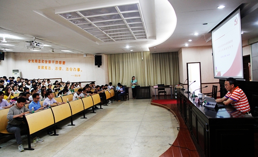 本网讯(党政办  张登高)为深入学习宣传贯彻党的十九大精神,按照学校党委要求和学院党委安排,524日下午,学院在九教南102举行学习贯彻十九大精神专题培训。马克思主义学院直属党支部书记米正华教授以《坚持以人民为中心的发展思想,办好人民满意的教育》为题作了专题讲座。学院党委委员、全体教工和学生党员参加了学习。培训由学院党委书记周其林主持。