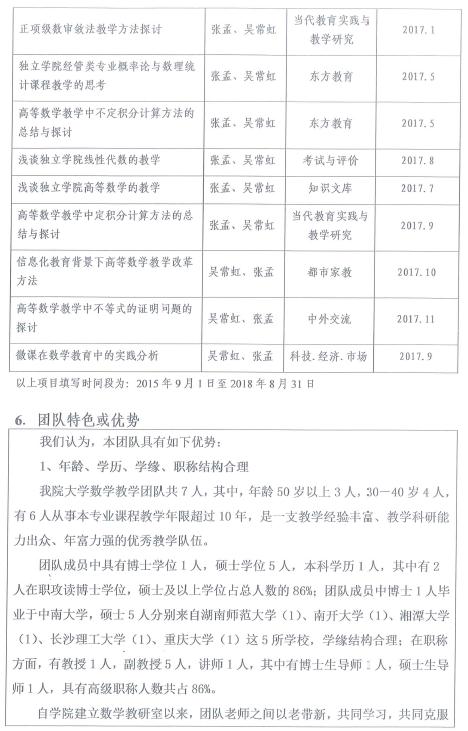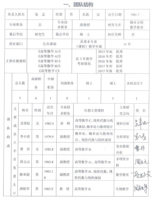 【优秀教学团队】大学数学教学团队