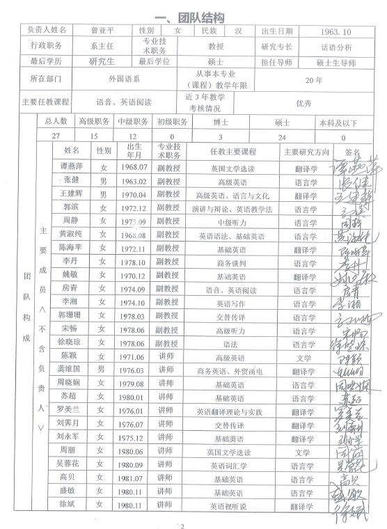 【优秀教学团队】英语专业教学团队